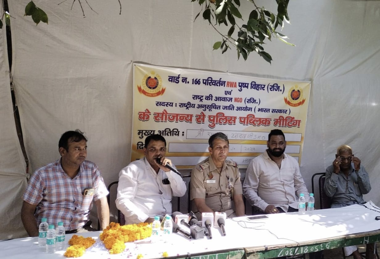 कानून व्यवस्था सुचारू रूप से चलती रहे इसलिए दिल्ली पुलिस के आल्हा अधिकारी समय-समय पर आम लोगों से मिलकर समस्याओं पर चर्चा करते हैं। इसी कड़ी में दिल्ली के अंबेडकर नगर स्थित मदनगीर इलाके में वार्ड नंबर 166 में परिवर्तन आरडब्ल्यूए पुष्प विहार द्वारा पुलिस पब्लिक मीटिंग का आयोजन किया गया। इस आयोजन में राष्ट्र की आवाज एनजीओ की भी सहभागिता रहीं। इस मीटिंग में इलाके के सभी लोग शामिल रहे। इस मौके पर अंबेडकर नगर थाने के थाना अध्यक्ष एसएचओ रामपाल यादव मुख्य अतिथि के रूप में शामिल हुए। उन्होंने मीटिंग को संबोधित करते हुए कहा कि अंबेडकर नगर में पहले के मुकाबले अपराधीक गतिविधियों में कमी आई है। यह कार्य इसलिए संभव हो पाया कि अंबेडकर नगर के लोग पुलिस की कानून व्यवस्था को बनाए रखने में सहयोग कर रहे हैं। उन्होंने बताया की अंबेडकर नगर इलाके में 6 लाख से अधिक पब्लिक है। इतने लोगों की सुरक्षा करना पुलिस के लिए एक बड़ी चुनौती होती है। यहां के लोगों को ही अपनी सुरक्षा के लिए आगे आना होगा। उन्होंने कहा कि अपराधी हमारे समाज के अपने लोग ही होते हैं। हमारे परिवार के लोग उन्हें अच्छे संस्कार नहीं दे पाते इसलिए वह अपराध के रास्ते को चुन लेते हैं। एसएचओ रामपाल यादव ने कहा कि हमें अपने बच्चों को अच्छे संस्कार देने होंगे ताकि वे दूसरे लोगों को भी अपने परिवार का सदस्य ही समझे और सब के साथ अच्छा व्यवहार करें। युवा अपराध इसलिए कर रहे हैं कि परिवार के लोग उन पर लगाम नहीं लग पा रहे हैं। पहले दक्षिणपुरी अपराध के लिए ही जानी जाती थे मगर अब यहां के युवा धीरे-धीरे अच्छे रास्ते पर आते जा रहे हैं। उन्होंने आगे कहा कि मैं अनेक इलाकों में नौकरी कर चुका हूं मगर यहां का इलाका बहुत चुनौतीपूर्ण है यहां के लोग अपने विकास के प्रति बहुत संवेदनशील नहीं है। इलाके के लोगों ने स्कूल जाने वाली लड़कियों की सुरक्षा के संदर्भ में चर्चा की लोगों ने बताया कि स्कूलों के बाहर जब लड़कियों की छुट्टी होती है तो भारी संख्या में लड़के खड़े हो जाते हैं और लड़कियों को छेड़ते हैं। बहुत सारे लोगों ने कहा कि क्षेत्र में कई इलाकों में युवा खुले आम शराब पीते हैं और लोगों के साथ बदतमीजी करते हैं। इसके अलावा एसएचओ रामपाल यादव ने कहा कि पुलिस कई बार जानबूझकर शक्ति नहीं करती है पुलिस की एक एफआईआर किसी भी व्यक्ति के जीवन को खराब करने के लिए काफी होती है। पुलिस कई बार ऐसे अपराधी किस्म की युवाओं को पकड़ती है और उनको समझा कर छोड़ देती है बहुत सारे युवा तो संभल जाते हैं मगर कुछ फिर से दोबारा गलतियां करना शुरू कर देते हैं। एसएचओ रामपाल यादव ने कहा कि हमारे क्षेत्र में अपराधीक गतिविधियां तभी रुकेगी जब हम अपने बच्चों का ध्यान अन्य गतिविधियों पर केंद्रित कर
