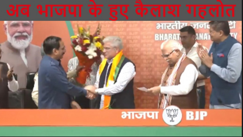 नई दिल्ली। दिल्ली के पूर्व मंत्री कैलाश गहलोत आम आदमी पार्टी (आप) से इस्तीफा देने के एक दिन बाद सोमवार को भारतीय जनता पार्टी (भाजपा) में शामिल हो गए। वह केंद्रीय मंत्री मनोहर लाल खट्टर और हर्ष मल्होत्रा, भाजपा की दिल्ली इकाई के अध्यक्ष वीरेंद्र सचदेवा और राष्ट्रीय मीडिया प्रमुख अनिल बलूनी सहित अन्य की उपस्थिति में भाजपा मुख्यालय में पार्टी में शामिल हुए।