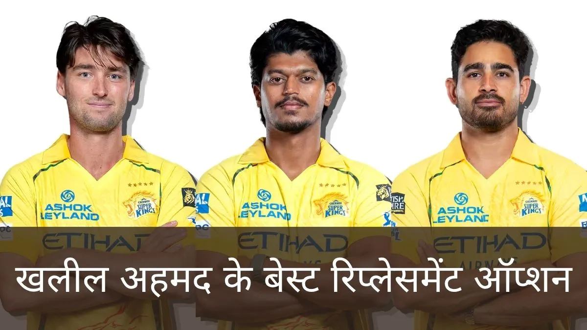 IPL 2026 में खलील अहमद के इंजरी के चलते बाहर होने के बाद चेन्नई सुपर किंग्स (CSK) के सामने गेंदबाजी लाइनअप को मजबूत बनाए रखने की चुनौती खड़ी हो गई है। ऐसे में टीम मैनेजमेंट के पास कुछ दमदार विकल्प मौजूद हैं, जिन्हें रिप्लेसमेंट के तौर पर शामिल किया जा सकता है।