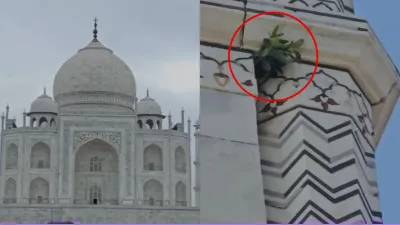 आगराः ताजमहल की दीवारों पर पेड़ उगने का मामला तूल पकड़ता जा रहा है। ताजमहल की मुख्य गुंबद पर पेड़ उगाने से इस ऐतिहासिक इमारत के संरक्षण और रखरखाव को लेकर सवाल खड़े हो रहे हैं। यह लापरवाही न केवल ताजमहल की सौंदर्यात्मक महत्ता को खतरे में डाल रही है, बल्कि संरक्षण और रखरखाव के प्रति विभाग की लापरवाही को भी उजागर कर रही हैं। गुंबद पर पेड़ उगने से न केवल स्मारक की संरचना पर असर पड़ सकता है, बल्कि इससे ताजमहल की सौंदर्यता भी प्रभावित हो रही है।