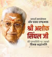 श्री राम जन्मभूमि आंदोलन के प्रणेता और विश्व हिन्दू परिषद के पूर्व अंतरराष्ट्रीय अध्यक्ष श्रद्धेय अशोक सिंघल जी की पुण्यतिथि पर पूरे राष्ट्र में उन्हें विनम्र श्रद्धांजलि अर्पित की जाती…