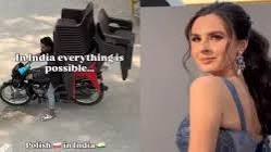 वीडियो में यह पोलिश महिला किसी भारतीय ग्रामीण इलाके में दिखाए गए एक देसी जुगाड़ को देख रही है—जहां कम साधनों में बड़ी समस्या का हल निकाला गया था। यह जुगाड़ चाहे पानी निकालने की मशीन हो, किसी साधारण स्कूटर को मिनी-कार्ट में बदलना हो या फिर किसी घर की रोज़मर्रा की मुश्किल को सस्ते और आसान तरीके से हल करने का तरीका—उसने भारतीयों की सोच को ‘जीनियस लेवल क्रिएटिविटी’ बताया।
