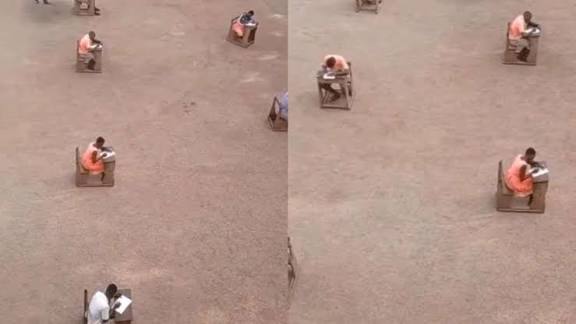 वीडियो में देखा जा सकता है कि परीक्षा देने वाले छात्रों को इतने अजीब तरीके से बैठाया गया है कि न तो वे किसी से बात कर सकते हैं, न इशारा कर सकते हैं और न ही एक-दूसरे की उत्तर पुस्तिका झांक सकते हैं। कुछ जगहों पर छात्रों के बीच इतनी दूरी रखी गई है कि ऐसा लगता है जैसे वे अलग-अलग ग्रहों पर परीक्षा दे रहे हों। वहीं, कई छात्रों को खुले मैदान में, धूप के बीच, एक-एक कर अलग पंक्तियों में बिठाया गया है। कहीं पर उन पर ड्रोन कैमरों से निगरानी की जा रही है तो कहीं निगरानी अधिकारी इतने सख्त खड़े हैं कि सांस लेने में भी डर लगे।